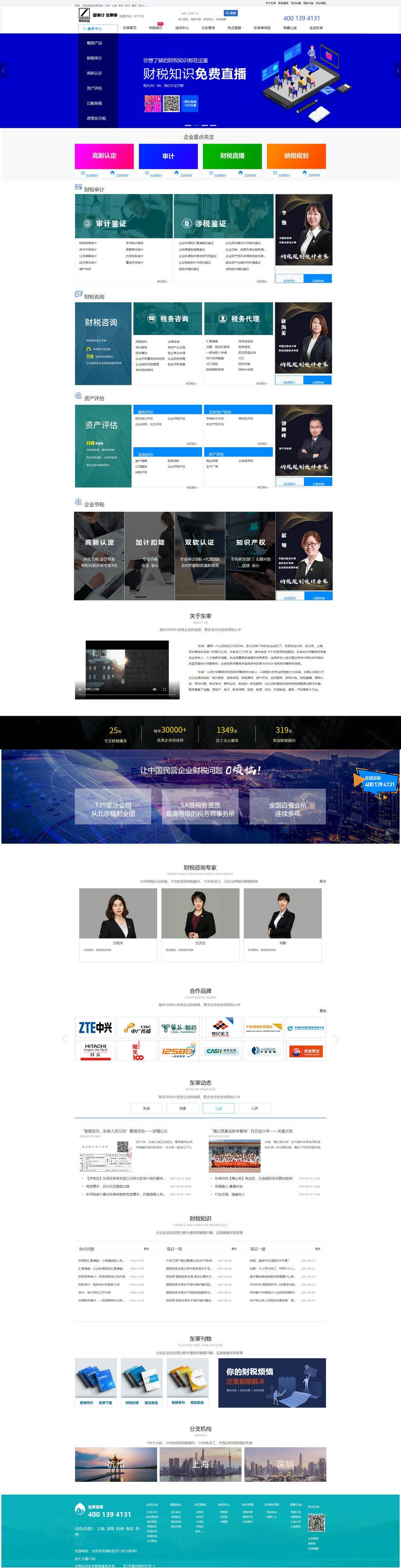 网站简介:北京审信东审税务师事务所有限责任公司主营:报表审计、财务报表审计、北京高新企业认定、北京审计、企业所得税汇算清缴、税务审计、税审报告、汇算清缴、年度审计报告、经济责任审计、离任审计、所得税汇算清缴、高新认定、高新技术、清算,是一家审计事务所,也是一家审计公司。东审会计师事务所总部设在北京,在北京、上海、深圳等地共设有 139家分公司,共有员工1349 名,其中包含 319 名资深财税顾问,为公司所面临的各种财税难题提出解决方案。